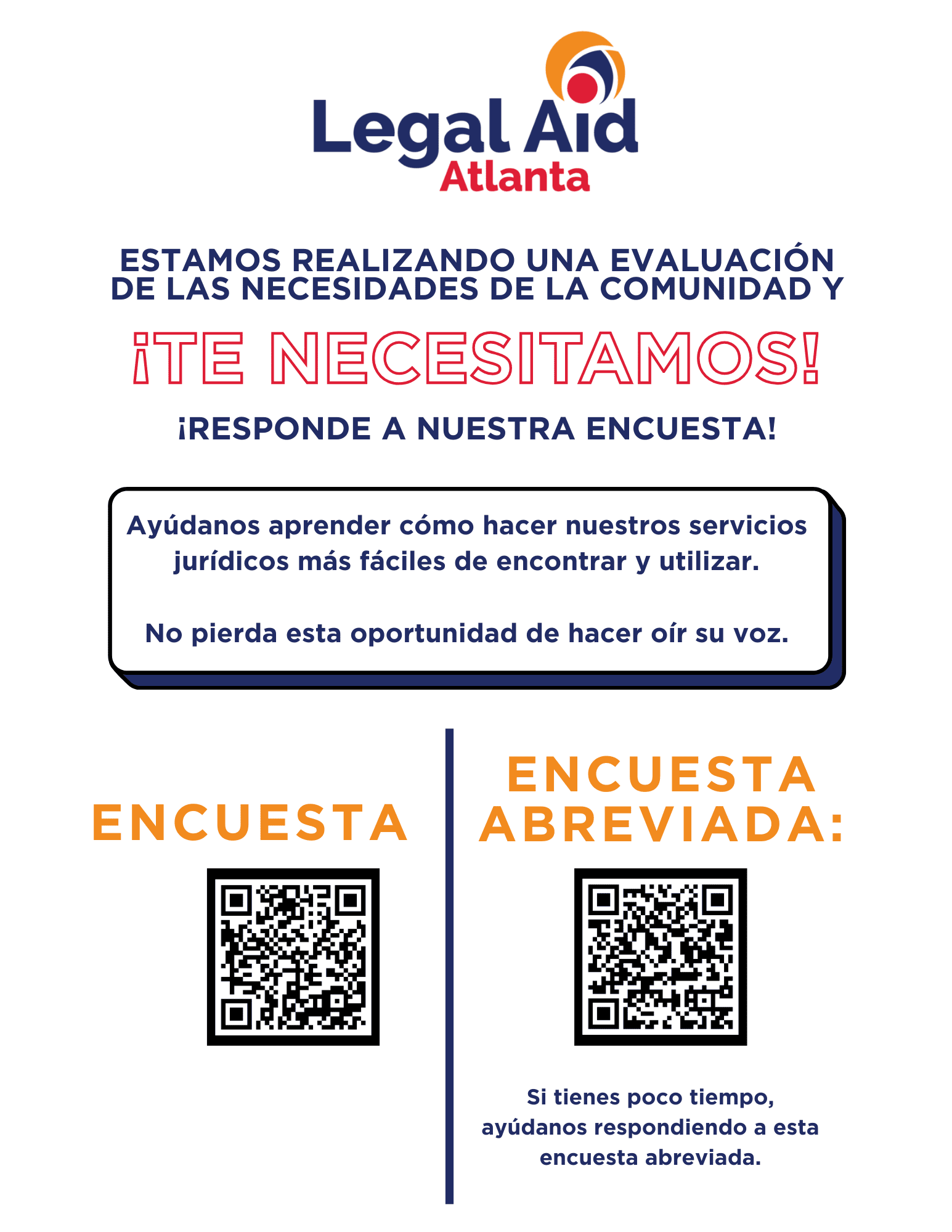 - Social media feeds: follow Atlanta Legal Aid on social and share/repost our needs assessment messages
